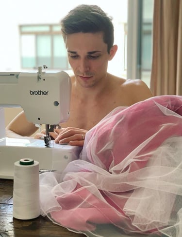 Etienne was taught his first sewing skills by his mother at a very young age. He eventually expanded his skills when he started making costumes for the works he created for Singapore Ballet, and for the Bornfire performances he was also apart of.